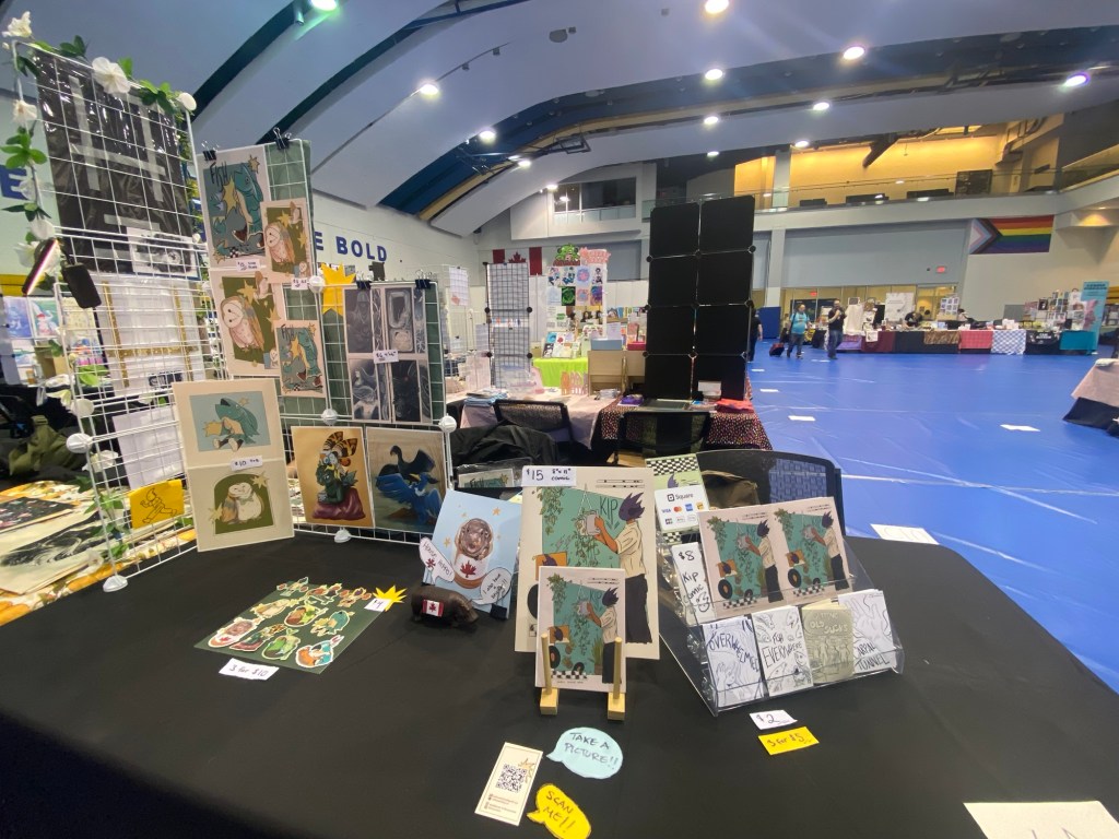 When I applied to have a table at the 2025 Toronto Comic Arts Festival (TCAF), I honestly didn’t think I would get in. I had very few comic pages done, only 3 mini zines, and had primarily fanart and slightly old artwork in my portfolio. So, when I got the email saying I was waitlisted, I was shocked and motivated to continue my work. Just when I thought I wasn’t going to get off the waitlist (about two weeks before TCAF), I got the email saying I was in! Needless to say, I was freaking out and incredibly grateful for the opportunity!