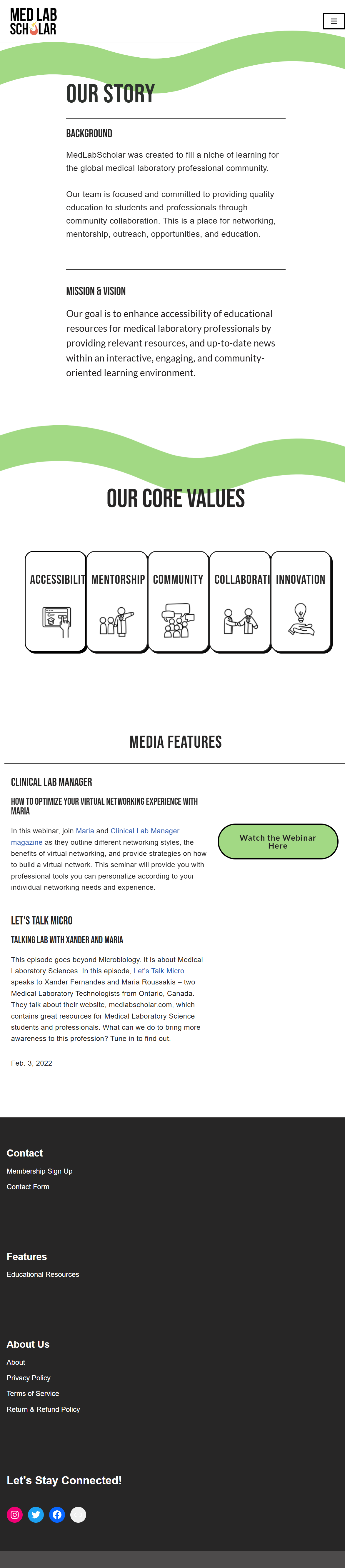 MedLabScholar was created to fill a niche of learning for the global medical laboratory professional community. Our goal was to enhance accessibility of educational resources for medical laboratory professionals by providing relevant resources and up-to-date news within an interactive, engaging, and community-oriented learning environment.