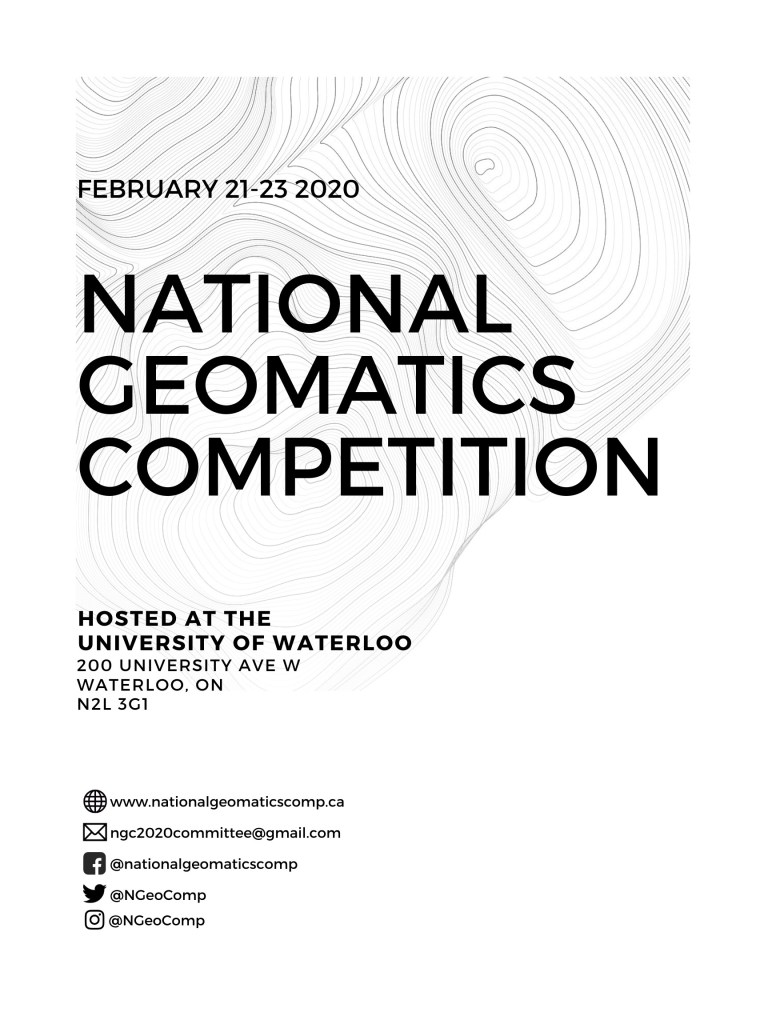 The National Geomatics Competition (NGC) is a student-led consulting engineering competition in the field of geomatics. Our focus is to bring together students, academia and industry representatives from across the country.