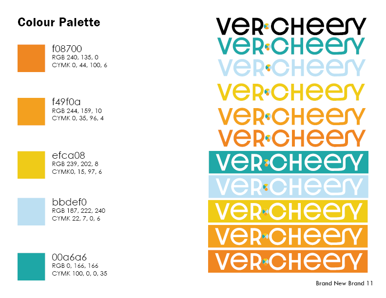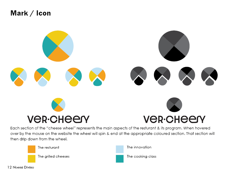 The aim of the colour palette was to remind the audience of cheese with the three different warm colours, as well as a fun yet modern twist to it using the cool colours. My secret ingredient was the logo itself, since each colour had a specific meaning to it and would melt or drip down from the logo if it were a motion graphic.