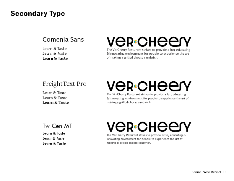 I decided to go with Dazzle Unicase for the logo’s typeface because it is a sans serif font, giving it a modern look. In addition, the “s” letter shape provides that slick feeling to the logotype, which is fitting for the word “cheesy”.